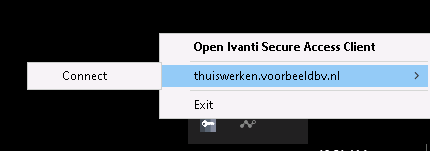 2. De VPN tunnel word opgestart als er een internetverbinding is (dit is een opgelegde keuze van uw bedrijf).